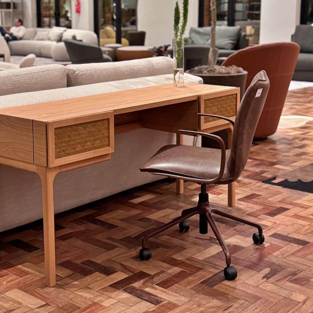 A linha Drakkar nasceu da busca pelo máximo conforto, e sua versão com braços eleva essa proposta, oferecendo apoio lateral acolhedor para momentos de concentração ou longas jornadas de trabalho.