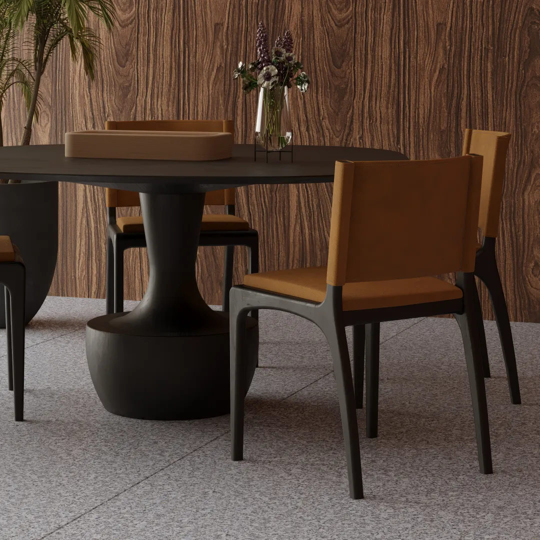Criada pelo Studio Rizzon, a Missy sem Costura oferece a versatilidade de escolha entre couro e tecido, permitindo que cada cliente encontre a versão que melhor dialoga com seu espaço e personalidade. É uma cadeira que se adapta sem se comprometer, que mantém sua identidade forte independentemente do revestimento escolhido.