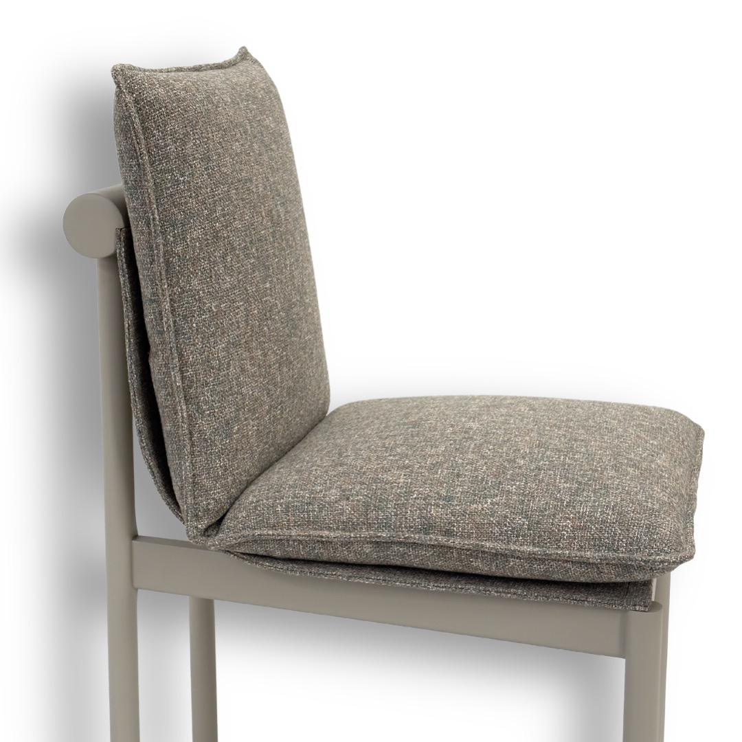 A Cadeira Davi é uma celebração da geometria orgânica e do conforto envolvente. Projetada pelo Studio Rizzon, esta peça destaca-se pela harmonia entre a robustez da madeira maciça e a suavidade do estofamento.